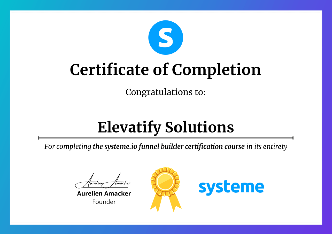Elevatify Solutions is an independent business and an authorized Systeme.io affiliate. Some content and courses offered were originally created by Systeme.io and are provided under full Private Label Rights. Elevatify is not an employee or official representative of Systeme.io. Check our Affiliate Disclaimer. Created with Systeme.io